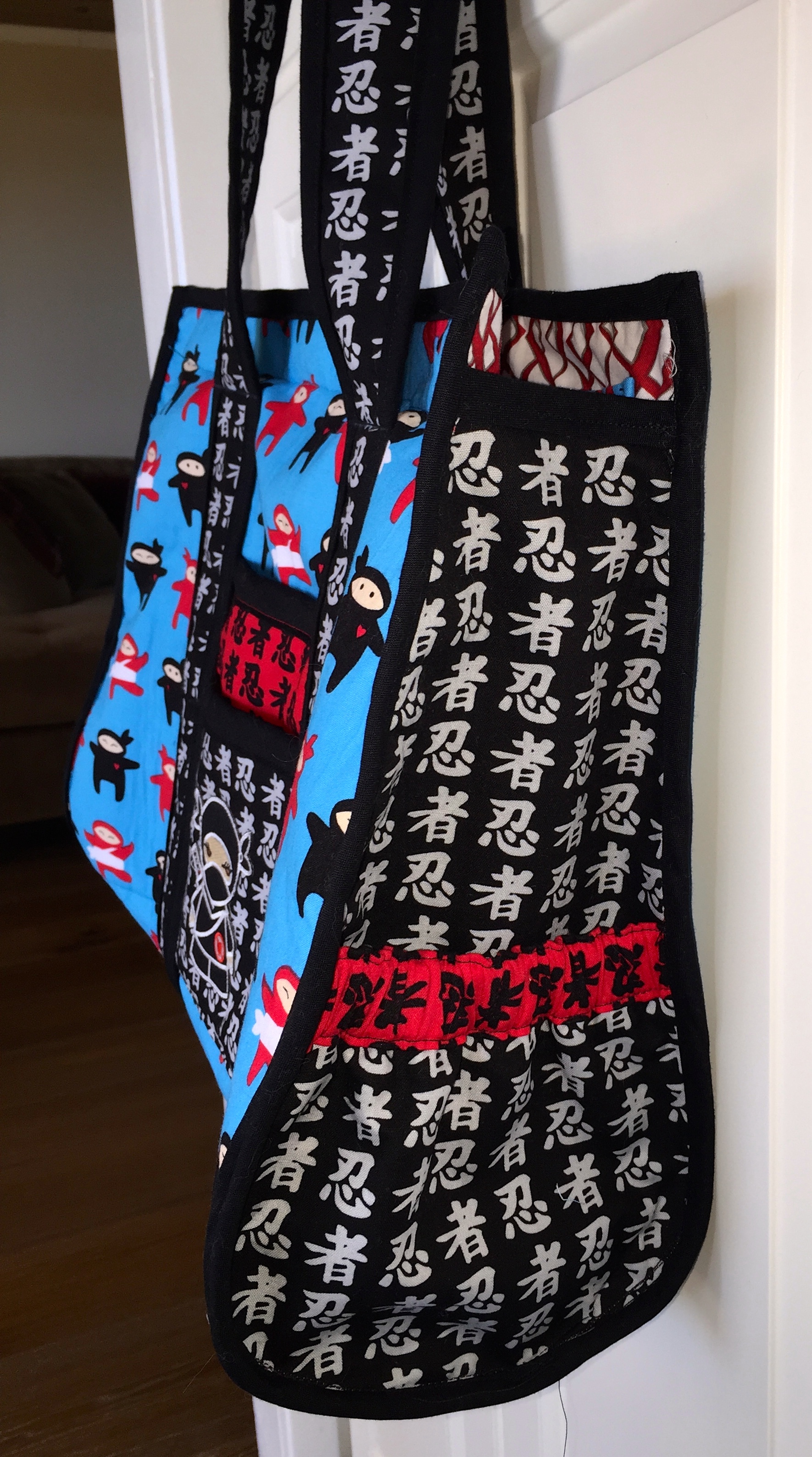 Above is a project bag. I made it for a friend for her birthday and I am quite proud. These little suckers go for about $16-$20+ on Amazon and at our local quilt shops. They are incredibly handy and easy to drop money on. I found an $8 pattern on Craftsy  and voila! I can make as many as I want. A little clear vinyl, a little fabric, ribbon and fusible fleece from my stash and we’re good to go. I filled it with notions I knew she’d love and finally I had a gift that I thought she’d really appreciate (and it went over pretty darned well if I do say so myself).