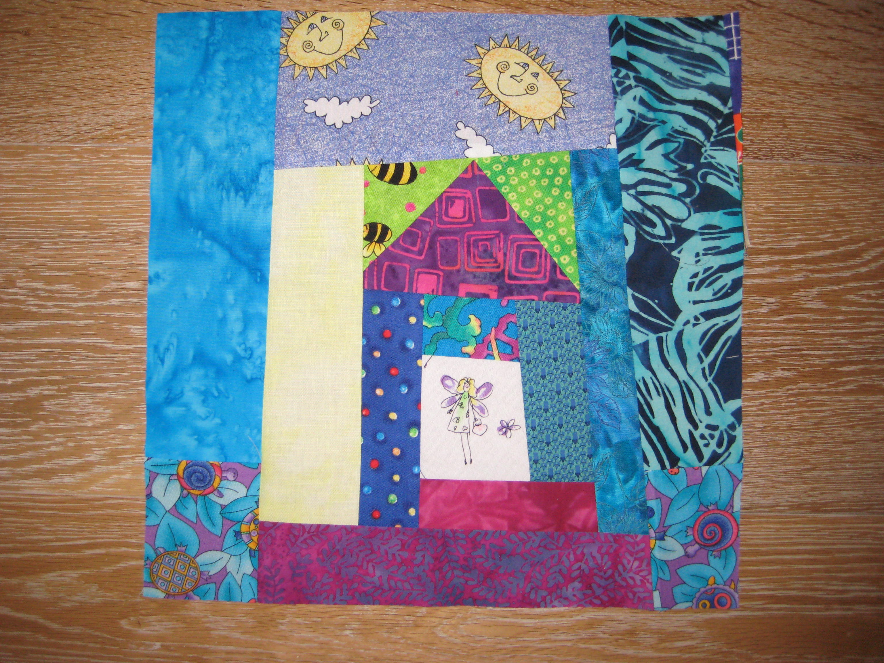 which is supposed to be a wonky log cabin house…I have learned that I am not so good with the wonk. Understandably as I have never done anything wonky in my life. I am so used to precision I think it will take me some time to loosen up. Here’s a close-up of the little fairy in the house