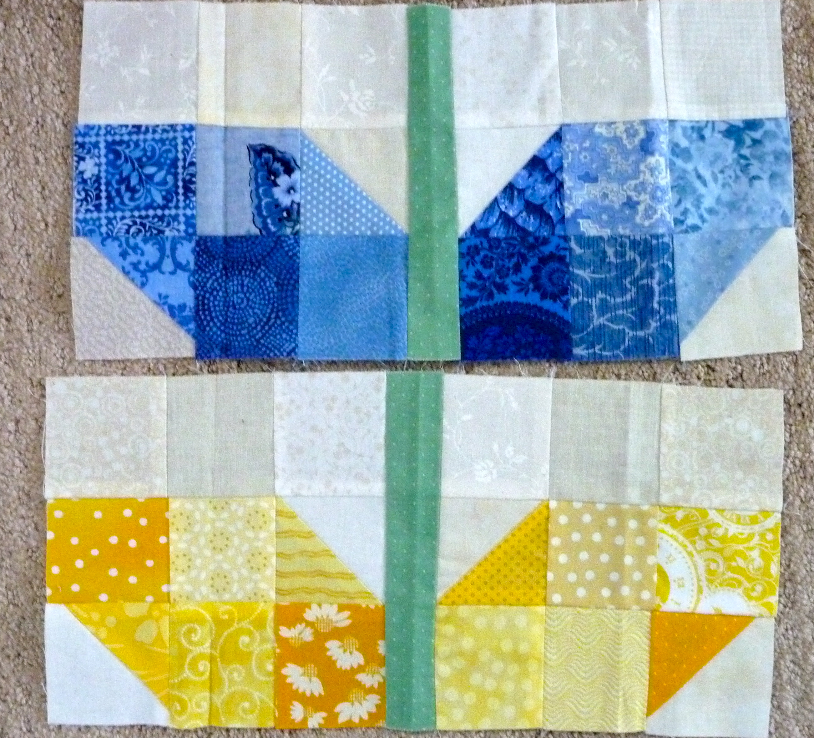 These are wonky butterflies. You can find the tutorial on redpepperquilts.com The finished quilt looks something like this