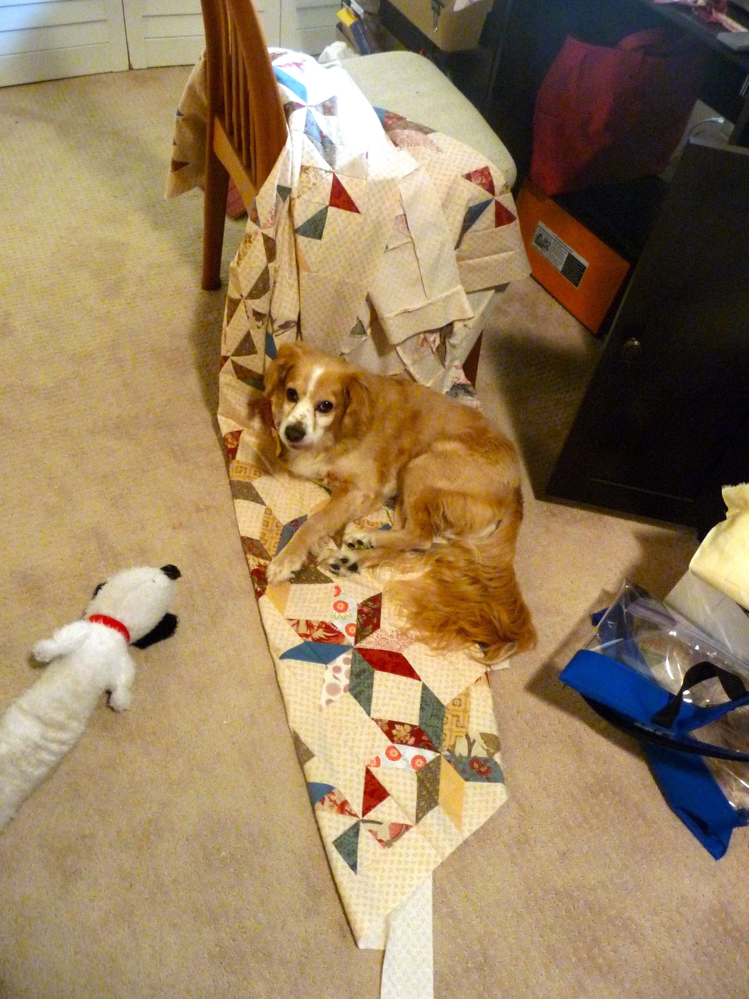 That’s all for the blocks I can show. Another particularly productively happy time I had was a retreat sew-in at a local Quilt Shop called Rosie’s Calico Cupboard. I sort of stumbled into it and got what I now find out was a coveted spot. They had put in the newsletter that they would be making this quilt called Chains of Hope
